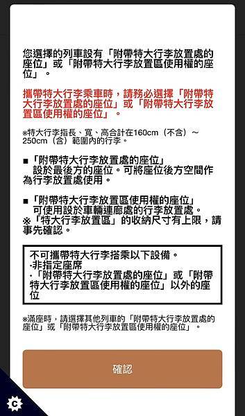 因此在預訂指定席座位時,會通知攜帶特大行李的注意事項。
