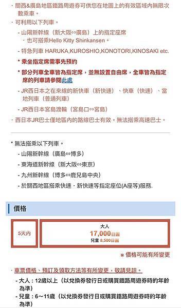 一路從京都、大阪、神戶、姬路、岡山、高松到廣島,這一整個範圍在五天內都能無限次數使用,是張超值的神券,輕鬆暢玩關西與廣島地區。