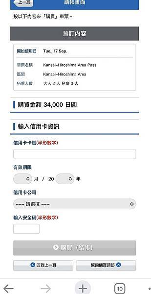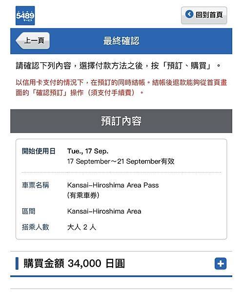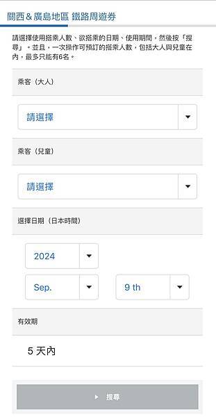 選擇 關西&廣島地區鐵路周遊券後,再看完相關說明,就能進入到購票的階段。