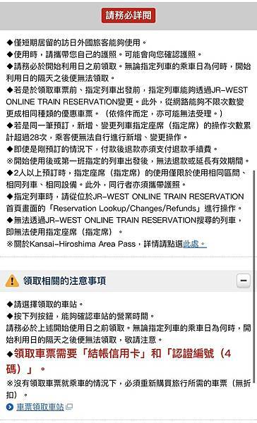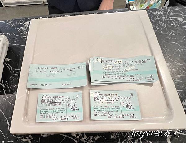 只要提供 Email內的認證編號,以及護照、信用卡,信用卡是購買使用的信用卡,過程大概五分鐘就完成,很順利地拿到關西&廣島地區鐵路周遊券。